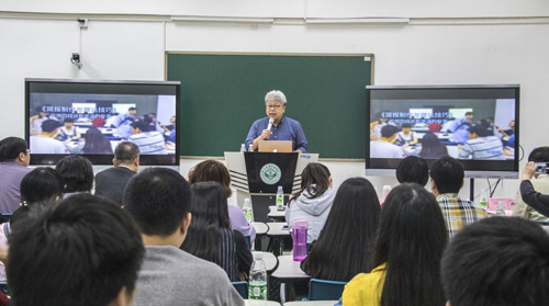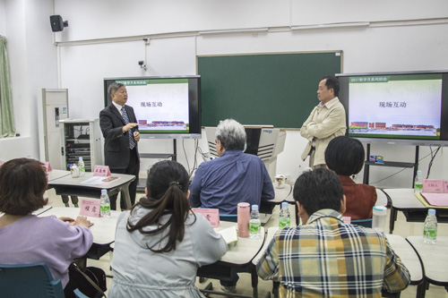 “逸仙新华班”作为我校创新教改的一方试验田,全体任课教师致力于“四段式”激越学习法课堂实践已近3年,教学效果受到学生的好评。为深入总结教改经验,拓展教育视野,激发教师的“互联网+教学”创新思维,4月13日下午,国家教学名师、我校校长王庭槐教授携手台湾国立成功大学优良教师、励人奖获得者辛致炜博士在东莞校区开展了一场别开生面的“四段式”激越学习法与“逸仙新华班”教学改革研讨会,为“教学月”再添惊喜。教务部部长尹小川主持会议,“逸仙新华班”师生代表参与研讨。