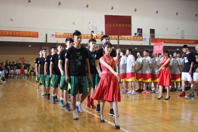 中山大学新华学院男篮代表队作为10所主办高校代表之一参加了开幕式暨揭幕赛。我校校长王庭槐、副校长许淑锐率体育部教师和我校男篮校队参赛。