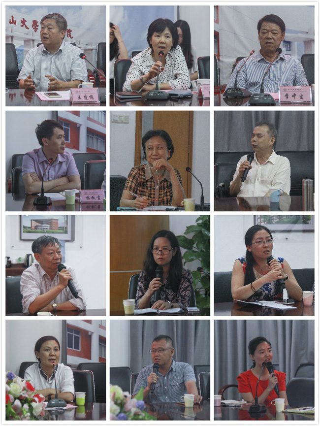 与会领导、各单位负责人、教师代表交流探讨(依次为:王庭槐、周云、李中生、林秋贵、张玲、陈家树、陈俊合、廖益清、殷丹、王秀岚、周国军、徐静婷) 刘英摄