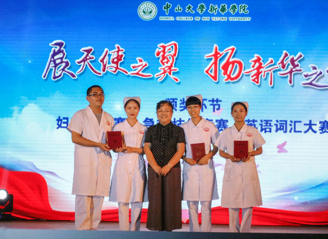 护理学院名誉院长、首席教授李亚洁为妇产科竞赛、急救技能大赛、英语词汇大赛、预防医学技能竞赛获奖者颁奖