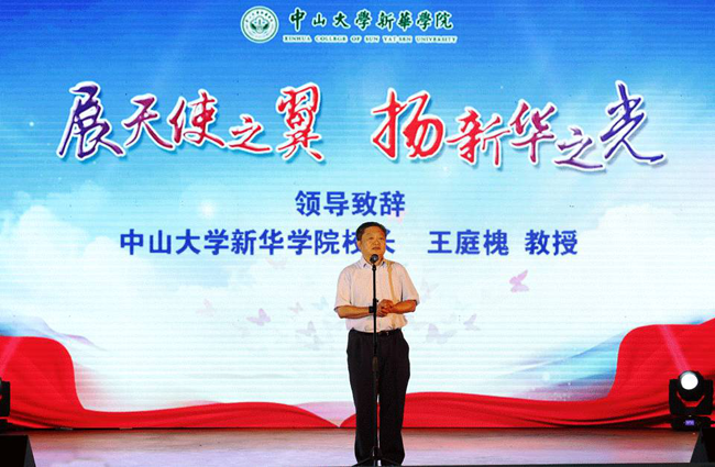 王庭槐校长为护士节晚会致开幕辞。王庭槐校长对这次的晚会表示祝贺,对本届的毕业生感到由衷的骄傲,并用护理学院李宇同学在第六届中山一院护理实习生技能竞赛中,与中山大学、广州医科大学、郑州大学等高校医学生同台竞技最终斩获冠军的事例鼓励同学们:不管入学成绩如何,只要肯努力,就一定能够比别人做得更好。他提到,中山大学附属第一医院院长肖海鹏和前任院长王深明均表示,希望能够多接收我校的优秀护理人才,正是因为新华护理学子“能用、好用、耐用”,才广受业界认可和行业青睐。“能用、好用、耐用”这三个词是修订专业人才培养方案时概括而来,词虽容易讲却很难做到,也是护理人才培养的精髓所在。王校长借此国际护士节之际,代表学校班子向护理学院的师生表示衷心的感谢,并祝愿护理学院越办越好,继续打造新华护理教育品牌,真正做到“展天使之翼,扬新华之光”。