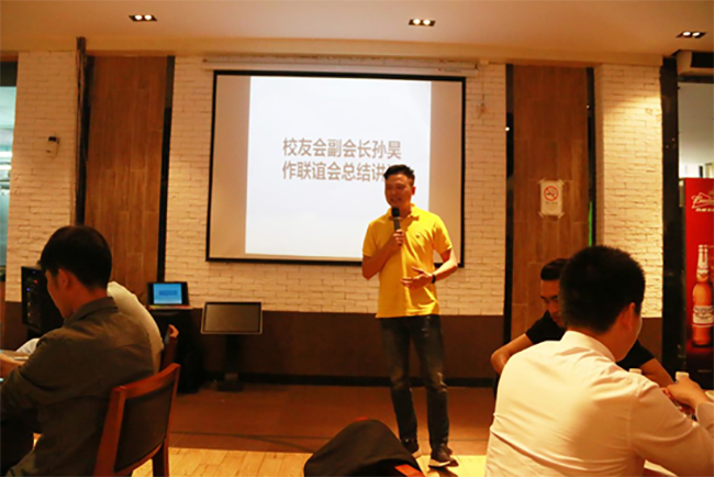 校友会副会长孙昊为联谊会作总结,校友工作离不开广大校友的参与与支持,未来要依靠大家的共同努力,校友会才能够成为一个优秀的团队。希望校友会能充分发挥桥梁和纽带作用,通过校友活动等载体搭建好校友、母校和社会三方的互动平台,为母校的长远发展贡献力量。