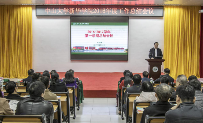 1月15日,中山大学新华学院2016年度工作总结会在广州校区召开。我校校长王庭槐在会上作2016年度学校工作报告,党委书记周云作2016年度党委工作报告,其他校领导分别作分管工作报告,各院(系)部负责人、各职能部门负责人相继汇报了本单位2016年度工作和2017年工作计划。会议由许淑锐副校长主持。