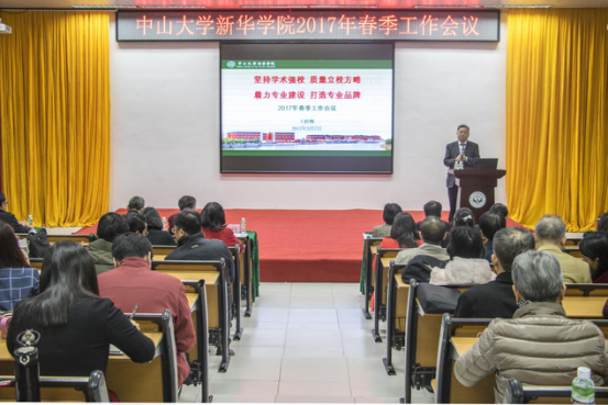 3月7日,我校2017年春季工作会议在广州校区召开。本次会议以着力专业建设打造专业品牌和加强党建工作为主题,集思广益、群策群力,进一步凝聚共识,明确继续坚持“学术强校、质量立校、特色兴校、开放办校”方略,为“建设位居全国同类高校前列的特色鲜明的现代大学”的目标而奋斗。全体校领导、校长助理,校务委员会、教学指导委员会成员,教学督导,各二级教学单位负责人,各二级党总支书记,各专业正副主任、首席教授、学科带头人,各职能部门负责人等出席本次会议,会议由许淑锐副校长主持。