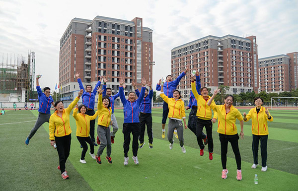 长跑结束后,王庭槐校长同学校办公室代表队欢呼庆祝