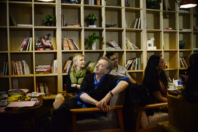 湖畔作家朗诵会上,来自英国的作家George Szirtes陶醉于朗诵表演