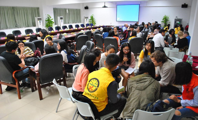 新华学子以小组为单位,与作家们围坐在一起讨论文学作品