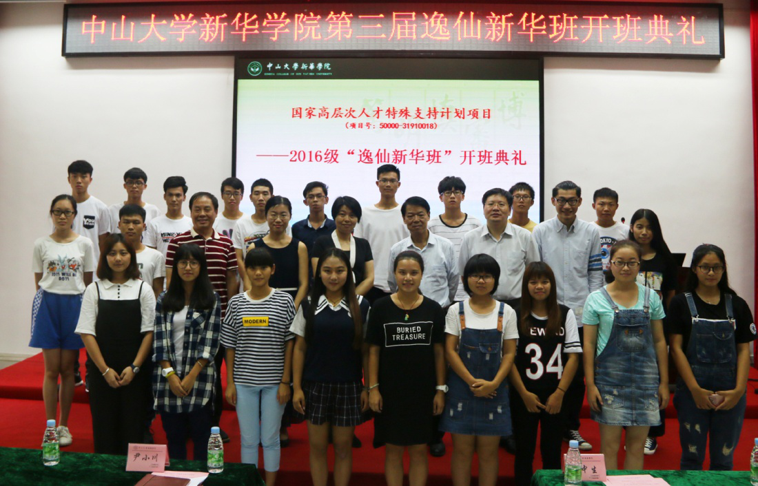 中山大学新华学院院长王庭槐、副院长李中生,逸仙新华班任课老师、专业导师、部分特长导师,2016级逸仙新华班全体学生、2014级和2015级逸仙新华班学生代表参加开学典礼。教务部部长尹小川、副部长刘琰琳主持典礼。