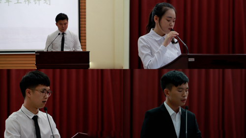 院学生会副主席兼学生社团联合会主席徐瑶、副主席兼艺术团团长董纪显、副主席兼记者站站长徐少伟分别对其组织工作进行汇报。