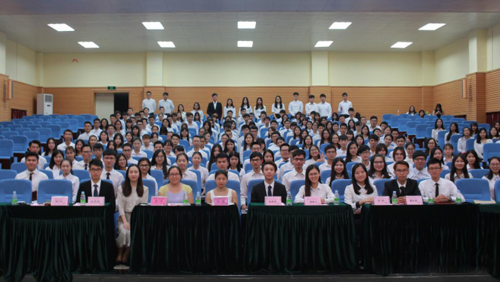 6月27日,中山大学新华学院第九届第一任学生会换任大会于我院东莞校区顺利举行。院团委书记殷丹,院学生会指导老师帅莉以及学生会各部门代表,各系学生代表,社团新任社长参会。