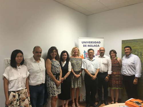 7月18日,王庭槐院长率中山大学新华学院代表团一行应邀访问了西班牙马拉加大学,受到了马拉加大学校长José Ángel Narváez Bueno、国际事务副校长Susana Cabrera以及国际西班牙语中心主任Giovanni Caprara等学校领导的热情接待。此行旨在签署两校合作备忘录。