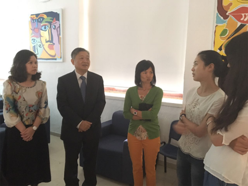 王庭槐院长与在该中心学习西班牙语的中国留学生亲切交谈