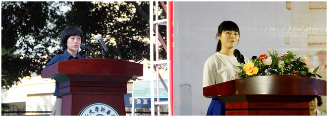 新生代表钟玉颖(左)、周格而同学(右)发言