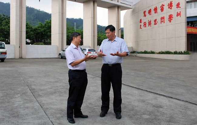 王庭槐院长(左)与郑庆顺副厅长(右)交谈学院毕业生就业工作情况