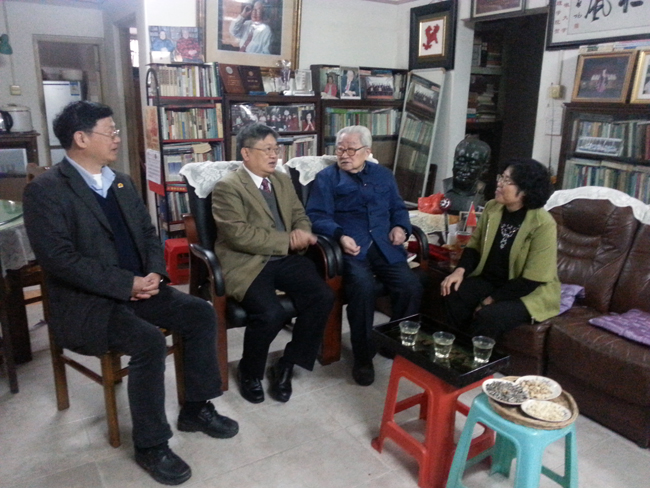 已过九十六高龄的夏老依然精神奕奕、思维敏捷,在交谈中尤其关心学院的发展情况。王庭槐院长向其汇报了学院在坚持“控规模、保质量、练内功、树品牌、促发展”的发展战略下,继续“坚保教学质量生命线,增强学科建设硬实力”的各项工作,并详谈了学院未来的教育发展规划及特色发展的理念。夏老听后颔首称赞,大为赞同,并强调大学做好学科建设的重要性。夏老说,“‘新华’这名字本来就极好,‘New China’,而现在学院的发展定位和人才培养思路也是极对的,新华学院培养出来的学生也必定是国家未来的新希望”,他对学院未来的发展充满信心和期待。