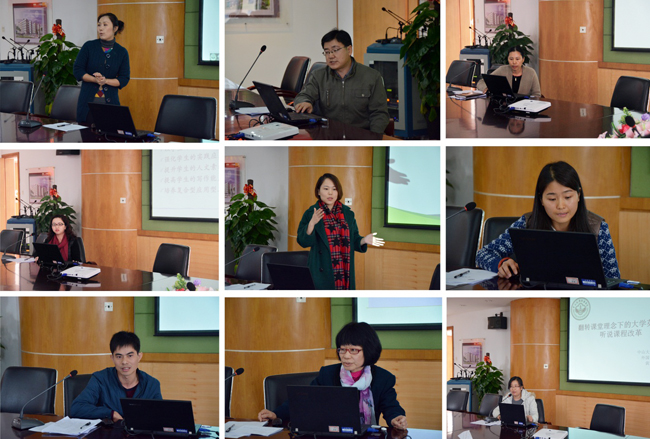 数据库基础及应用、高等数学、大学体育、大学语文、综合英语、马克思主义哲学原理、中国特色社会主义概论、国际形势与中国政策、大学英语视听说9门课程参与立项评审,分别由信息科学系赵慧青,高等数学教研室主任徐应祥,体育教研室林翠娟,中国语言文学系林玮,外国语言文学系彭丹,思想政治理论课教学研究部林丽英、徐伟明,思想政治理论课教学研究部副主任吴素香,外国语言文学系黄珍进行答辩。他们分别以PPT方式,对课程每一个教学单元的教学内容、教学方法进行阐述和答辩,最后评审小组针对教师答辩进行评议及评分。