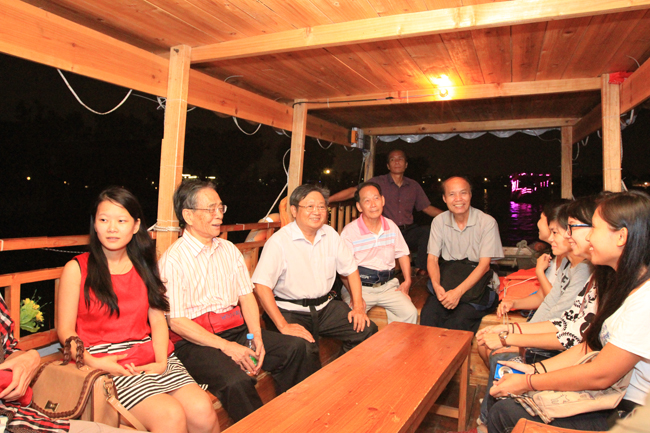 10月30日晚19时30分,我院诚邀中山大学老教授、我院教学督导陈荣冠、黄洪铮、林汉良、潘敬远、潘琪、罗蔚茵、董丽明、李宏新等一行11人携中国语言文学系30余名优秀学子同游华阳湖。活动以采风、调研、研讨、话谈等方式进行。