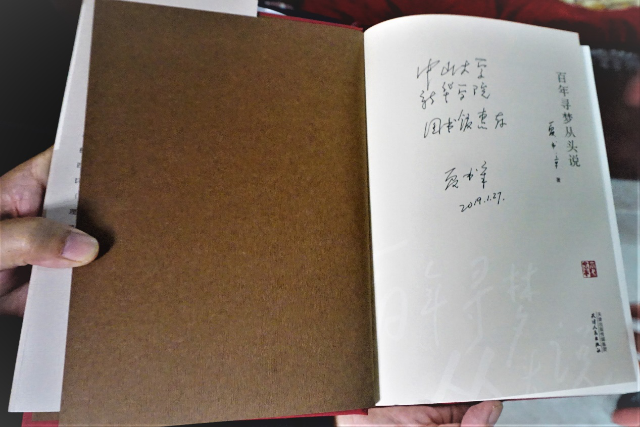 夏老向我校图书馆赠送自己百岁诞辰出版的百岁传记——《百年寻梦从头说》