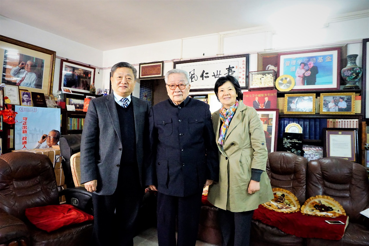 王庭槐校长、周云书记看望我校学校发展专家顾问委员会高级顾问夏书章教授并合影留念(从左至右:王庭槐、夏书章、周云)