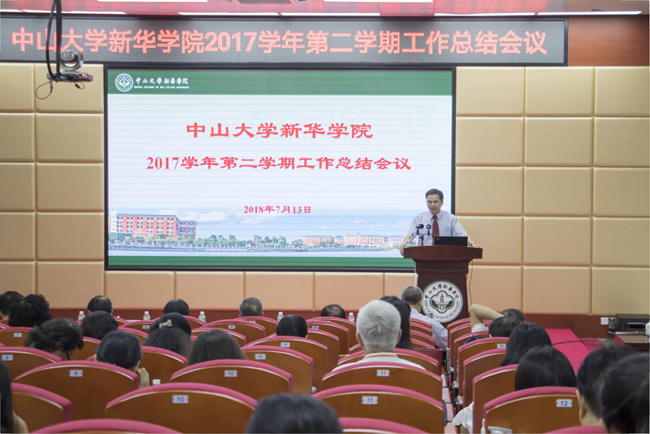 7月13日,中山大学新华学院2017学年第二学期工作总结会议在广州校区会议厅召开。王庭槐校长、周云书记分别作学校工作总结报告和校党委工作总结报告,杨卫华副校长主持会议。学校领导、校务委员会、教学指导委员会全体成员,教学督导室全体督导,各职能部门、院系党政正副职负责人,各院系专业主任、首席教授、学科带头人、入选学校“双百计划”的教师等与会。