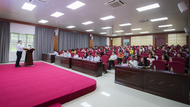 紧接着,王庭槐再次强调了学校在第二个发展十年之初提出的十六字发展方略:“学术强校 质量立校 特色兴校 开放办校”,并对各单位围绕这一方略,在人才培养、教学质量改革、科研竞争力提升、重点学科特色专业建设等方面所做出的努力和所取得的阶段性成果给予了充分肯定。为了更好地总结一学期的工作,他重申了2018年春季工作会议上确立的工作要求——“抓重点 补短板 强特色 固本培元厚内涵”,本学期大家同心协力全面落实工作要求,主抓办学经费和师资队伍两个重点,办学经费方面开源节流和师资队伍方面则固本培元。