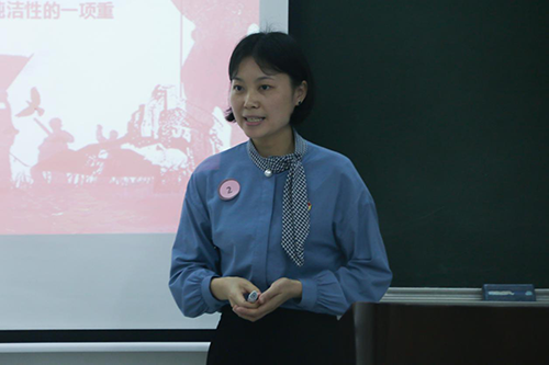 康复医学系辅导员、两系师生联合党支部委员吴亚丽老师进行微党课讲授