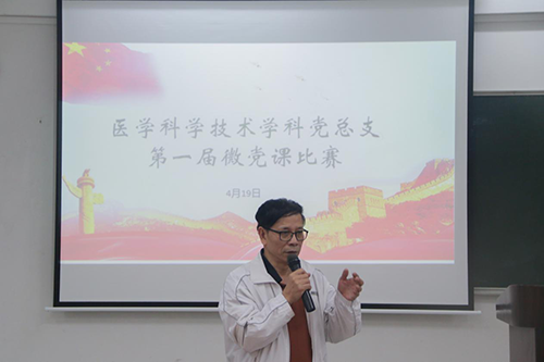 为了提高党员教育培训的教学水平和教育质量,进一步增强“四个意识”、坚定“四个自信”,践行“两个维护”,使习近平新时代中国特色社会主义思想进教材、进课堂、进头脑,4月19日上午,医学科学技术学科党总支在广州校区教学楼B201举行第一届“微党课”大赛。本次比赛邀请了马克思主义副院长吴素香教授,医学科学技术学科党总支书记陈仲本教授,党委统战部部长、组织部副部长殷丹做评委,大赛由医学科学技术学科党总支委员李妙主持。此外,入党积极分子和发展对象同学到场进行观赛学习。