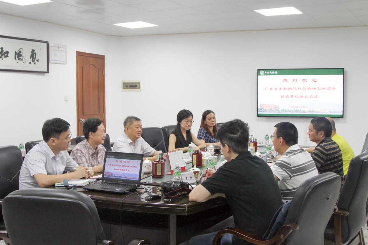 5月15日上午,广东省生物制品与药物研究所党委书记、所长张贤昌,党委委员、副所长张吉凯,科技办主任许雄伟等一行来访我校,我校校长、党委副书记王庭槐出席座谈,学科与科技管理处处长张玲,副处长史航,药学院副院长曹颖男陪同与会。座谈会由药学院副院长张素中主持。