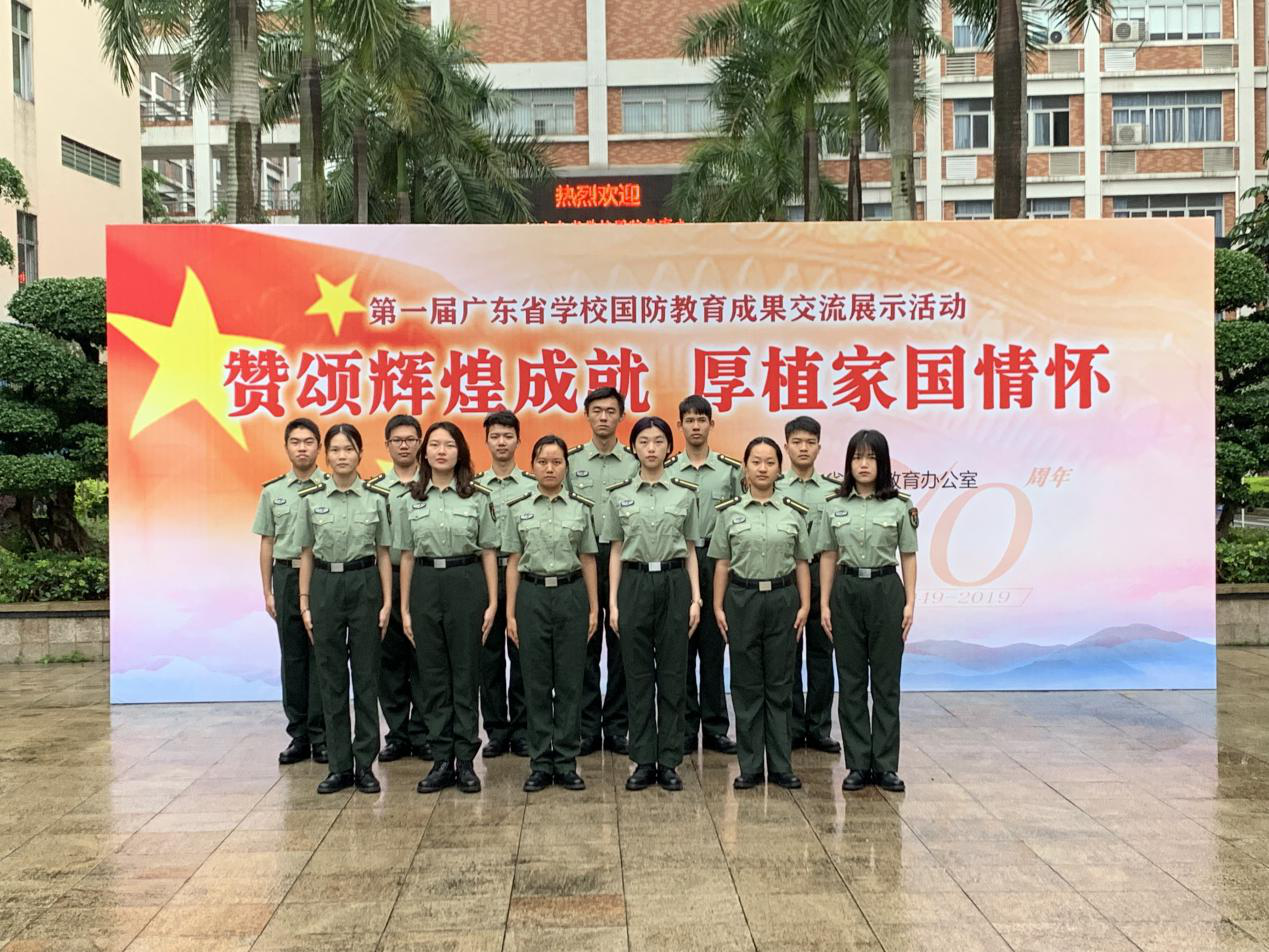 习近平总书记在学校思想政治理论课教师座谈会上强调,要厚植爱国主义情怀。近年来,学校坚持将国防教育作为思想政治理论的重要内容,强化爱党爱国爱军价值观培育,以国防教育为主线,以军事理论教学为重点,在军训工作、军事课程、征兵宣传等工作上,做了许多努力,促进了我校学生掌握基本军事理论与技术技能,增强了国防观念和国家安全意识,强化了爱国主义、集体主义观念,加强了组织纪律性,全面提升综合素质,为中国人民解放军储备合格后备兵员打下坚实基础,不断为我军现代化建设输送了一批又一批优秀人才,全面提升了我校武装工作水平。在全校师生的大力配合和共同努力下,我校获得了教育部颁发的2018年“国防教育特色学校”称号、广东省国防学会2016-2017年度工作“先进单位”以及天河区人民政府征兵办公室颁发的2016年、2017年“征兵工作全优单位”、2018年“征兵工作先进单位”。