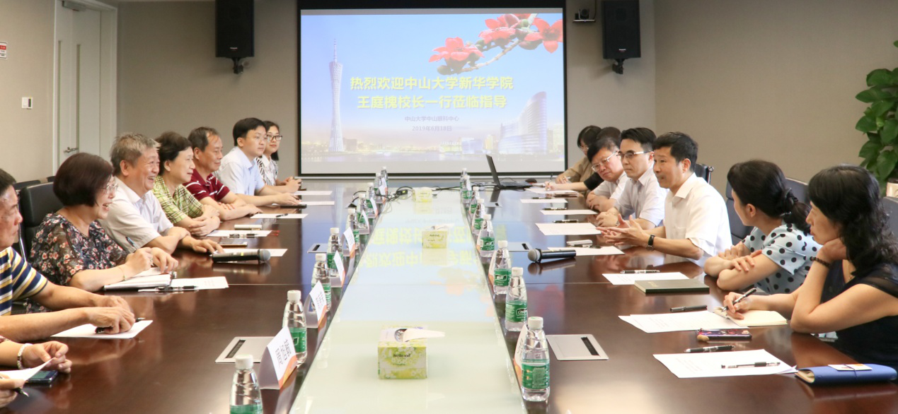 6月18日下午,王庭槐校长带领中山大学新华学院校长办公室丁艮平主任、学科与科技管理处张玲处长、教务处尹小川处长、人事处简庚荣处长、健康学院周旭毓副院长、学科与科技管理处史航副处长及相关工作人员一行10人,赴中山大学中山眼科中心(以下简称眼科中心)开展眼视光学系合作办学交流。此行受到眼科中心主任刘奕志教授、党委书记夏丹、中心副主任兼眼科学与视光学系主任卓业鸿教授、眼科学与视光学系副主任郑丹莹教授等人的热情接待。双方就眼视光学系合作办学事宜展开友好深入会谈,对合作办学的相关重要事项达成共识。