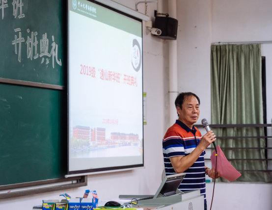 王庭槐校长为开班典礼致辞。他代表学校向“逸仙新华班”的新同学表示热烈的欢迎和衷心的祝贺,并总结了过去五年“逸仙新华班”教育教学模式所取得的显著成绩。他殷切希望2019级“逸仙新华班”学子充分利用学校的优质教育教学资源,在实践当中积极践行“三早”教育理念:早立志规划人生、早理论联系实际、早接触社会实践,还要有“舍我其谁”的担当和气魄,胸怀梦想,脚踏实地,不忘今天的“初心”,牢记人生的“使命”,培养自己成为品德优良、人格健全、身心健康、特长发展,有知识、有智慧、有能力和有修养的复合型应用型人才,成长为“德才兼备、知行合一”的社会主义合格建设者和可靠接班人。