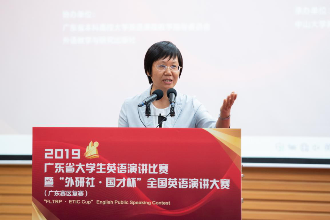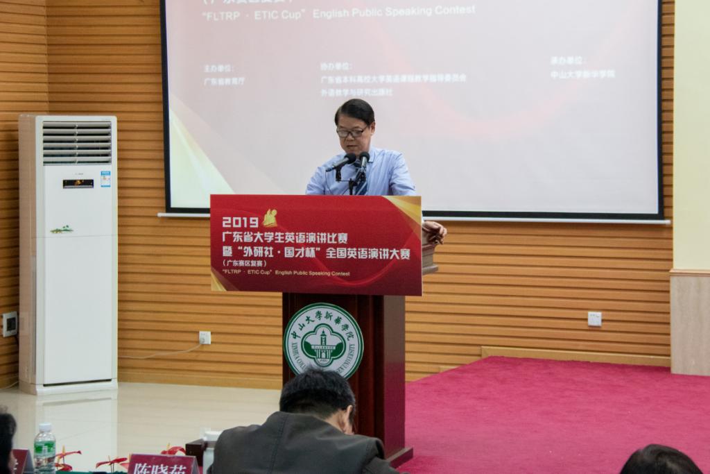广东省本科高校大学英语课程教学指导委员会副秘书长、广东医科大学外国语学院杨劲松教授表示,本次演讲大赛人才辈出,头角峥嵘,学业翘楚舌战群儒,才辩无双玉口生花。杨教授介绍了广东省本科高校大学英语课程教学指导委员会在过去五年里完成的多项工作,希望今后与诸位一道,继续秉承“不忘初心、立德树人”的宗旨,奋斗新时代、拥抱新外语、迎接新挑战。