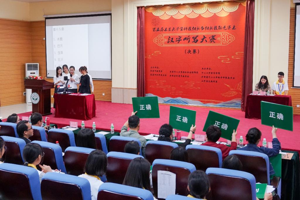 为进一步增强文化自信,营造正确读写汉字、感受汉字背后的知识与文化的良好学风,促进大学生自觉传播汉字文化、传承中华传统文化,11月16日,第五届东莞大学生科技创新节创新技能竞赛之大学生汉字听写大赛(决赛)在中山大学新华学院东莞校区成功举办。来自东莞市9所高校的16支优胜队伍经过层层竞逐,同台竞技,共同领略汉字之美。