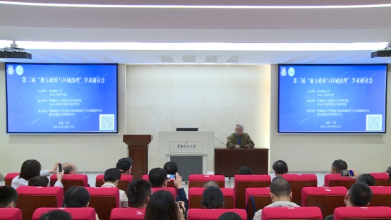 华南师范大学政治与公共管理学院院长胡中锋教授致辞,对到会嘉宾表示热烈欢迎与感谢,表示举办第三届“地方政府与区域治理”学术研讨会十分契合党的十九届四中全会精神,对处在新时代背景下的中国,对促进国家治理体系和治理能力现代化的理论研究和实践有着重要意义。