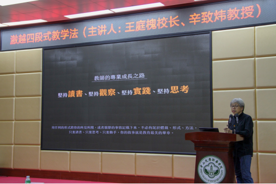 辛致炜教授作“激越四段式教学法在教材设计上的应用”的主题报告