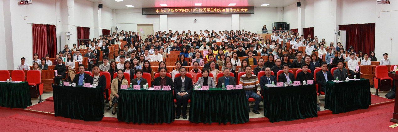 为表彰优秀学子,传播榜样的力量,营造良好的育人氛围,中山大学新华学院(下文简称“我校”)2019年优秀学生和先进集体表彰大会于12月10日下午在东莞校区举行。学校党政领导班子,各教学单位、职能部门负责人,师生代表与会。活动特邀广东华坤建设集团有限公司周盛光先生、朱龙先生、潘学豪先生,玖龙纸业有限公司尚荣女士,江西省广东商会符宏智先生出席本次表彰大会。大会由李中生副校长主持。