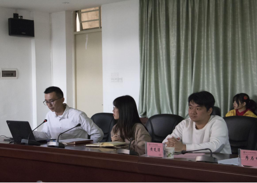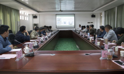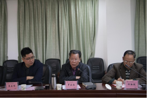 我校总务处处长谢凯忠(左一)介绍我校后勤工作基本情况