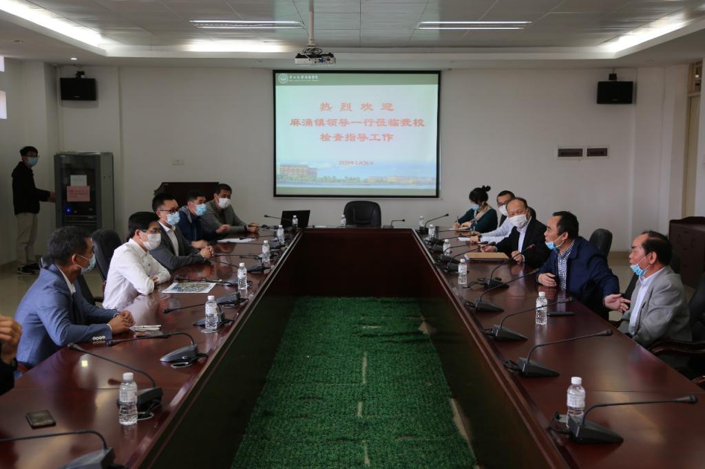 2月26日上午,东莞市麻涌镇委书记黄桥法、镇委委员吴楚云、副镇长黄伟雄及有关职能部门一行到中山大学新华学院(以下简称“学校”)东莞校区实地调研新冠肺炎疫情防控工作和重大工程复工建设情况。校地双方代表举行座谈会。
