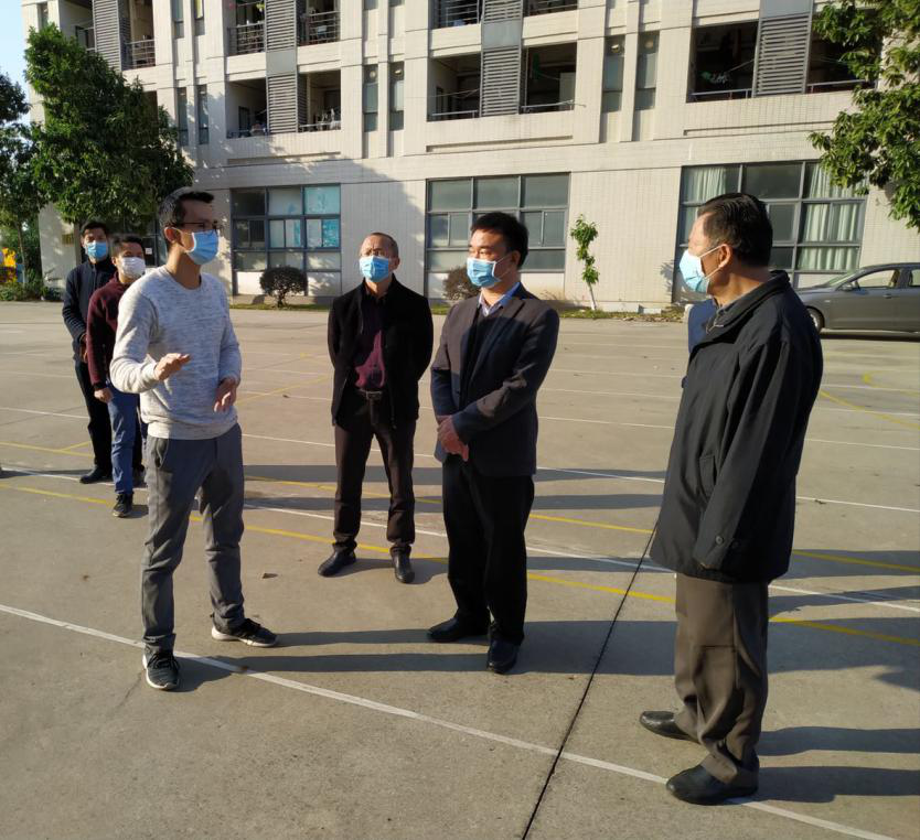 东莞市教育局党组成员、副局长王健(右二)实地检查指导东莞校区疫情防控工作