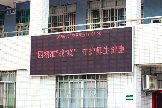 学校严格按照广东省教育厅要求,落实“四精准”“六分”“一独立”“三全”“五管”校园疫情防控措施,做好防控物资保障,配备足够的医护人员,加强校园环境整治,加强学生学习生活管理,加强校园应急演练,做好教育教学管理,确保学生返校平稳、有序、安全。