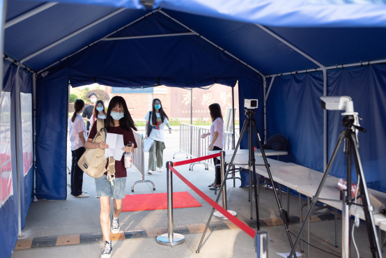 6月13-14日考试期间,为方便考生到校,我校在校内做好考生考试指引,并按照疫情防控要求加强考场疫情管理,做好考生入校健康检查工作、考生进出考场路线安排、隔离考场等工作,并在每半天考试结束后严格做好考场区域及各考场内部的消毒工作,确保招生考试工作按时、稳步推进。