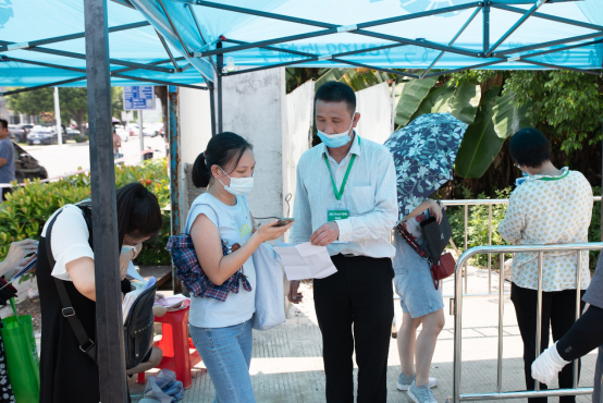 开考首日上午,广东省财政厅调研员古小丽,市财政局班子成员、市注册会计师行业党委专职副书记王志豪,麻涌镇副镇长、财政分局局长叶艳峰等领导到我校考试现场巡视指导;考试前夕,我校提前封闭考试区域,对考场进行消毒;考试期间,我校开设考生专用通道,考生佩戴口罩,考务人员在入口处对考生逐一进行体温检测,核查准考证、有效身份证和“粤康码”绿码后有序进入考场。考试期间,各考场疫情防控落实到位、考场秩序井然,考生们认真答题;监考老师及相关工作人员严格遵守考试监考规定,积极为考生们提供热情周到的服务,受到广大考生的一致好评。