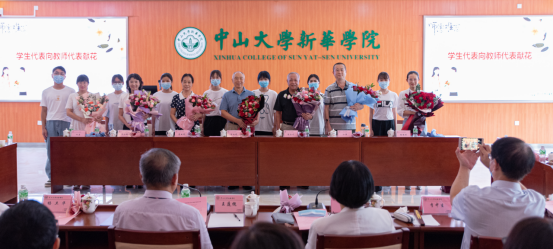 随后,学生代表向教师、教职工代表献花,教师、教职工代表们纷纷发言。