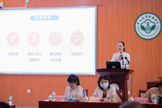 疫情期间身处疫情重灾区湖北省黄冈市的徐滋琪老师分享了自己的抗疫经历和人生感悟。她的父亲是一名基层一线医生,曾40余天投身抗疫不曾回家。作为一名医学硕士毕业生,她发挥专长,联合家乡科学防疫中心的医学志愿者们成立了医疗问询救护组,凭借所学的专业知识为家乡的抗疫行动贡献力量。作为一名学生辅导员,她每日摸排学生状况,问候身在湖北学的学生,提醒学生报平安,及时和家长保持联系,做好学生动态跟踪工作,用行动托起学生的信念与希望。