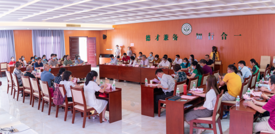 教务处处长尹小川老师发言。他介绍了广东省第五届高校(本科)青年教师教学大赛我校的参赛组织筹备工作,勉励广大教师乐教善教,以赛促教,积极参加一些专业赛事来提升从教能力。