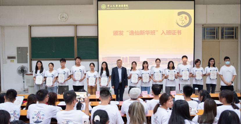 王庭槐校长(中)颁发2020级“逸仙新华班”入班证书