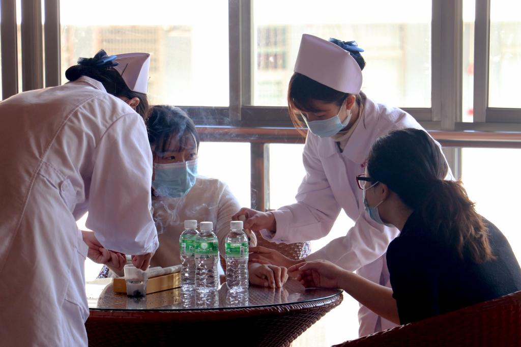 志愿队为学校教职工进行艾灸