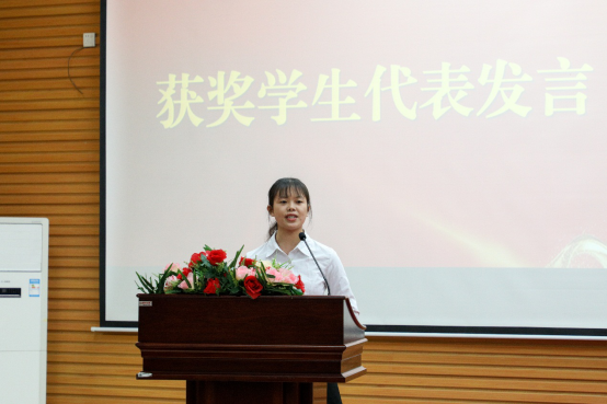 国家奖学金获奖学生代表生物医学工程学院李学妍分享了她的学习心得,建议同学们要在大学期间设立一个适合自己的目标,并持之以恒不断努力实现目标,要有奉献精神和合作意识,积极参加校内外各类活动,在保证学习质量的基础上,努力提高自己的综合素质。