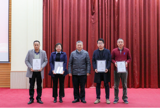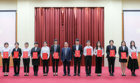 王庭槐校长(左二)、周云书记(右一)为国家奖学金获奖学生颁奖