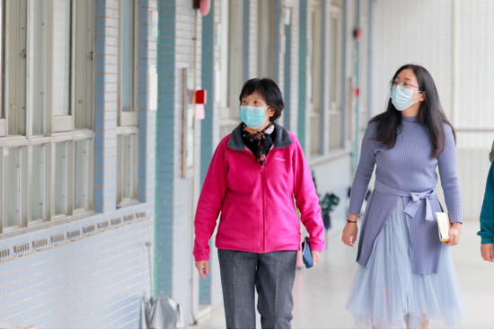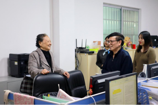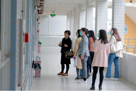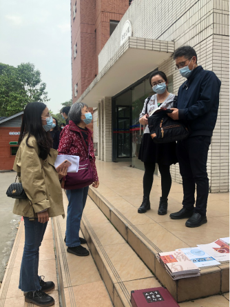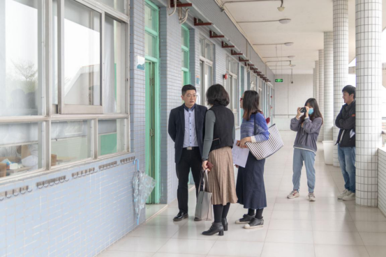 开学第一天,罗蔚茵督导(左一)听完课后,走访生物医学工程学院